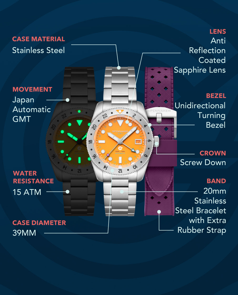 Track three time zones with ease thanks to the 24-hour bezel and Japan Automatic GMT movement.