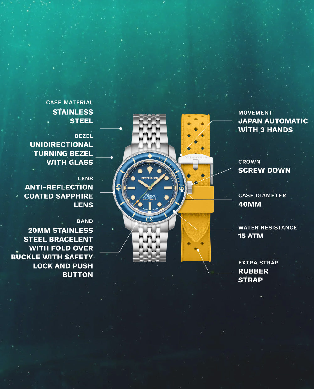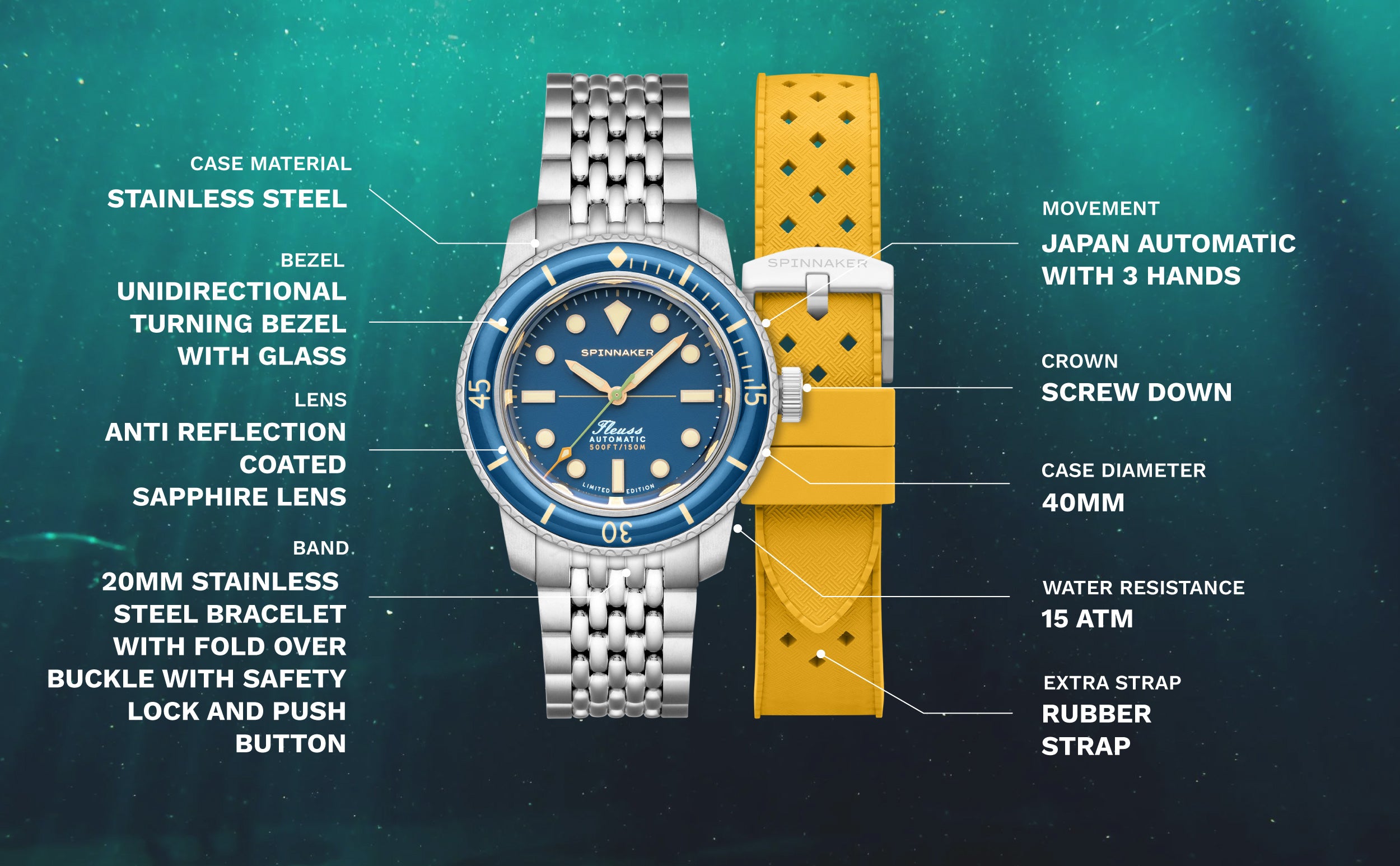 Engineered with precision, the Fleuss 40 Automatic watches boast solid stainless-steel beads of rice bracelets and extra rubber straps for versatility. The sleek 40mm case size adds a modern touch to the iconic design. The Miyota 9 series movement ensures reliable timekeeping, while scratch-resistant sapphire lenses guarantee clarity.