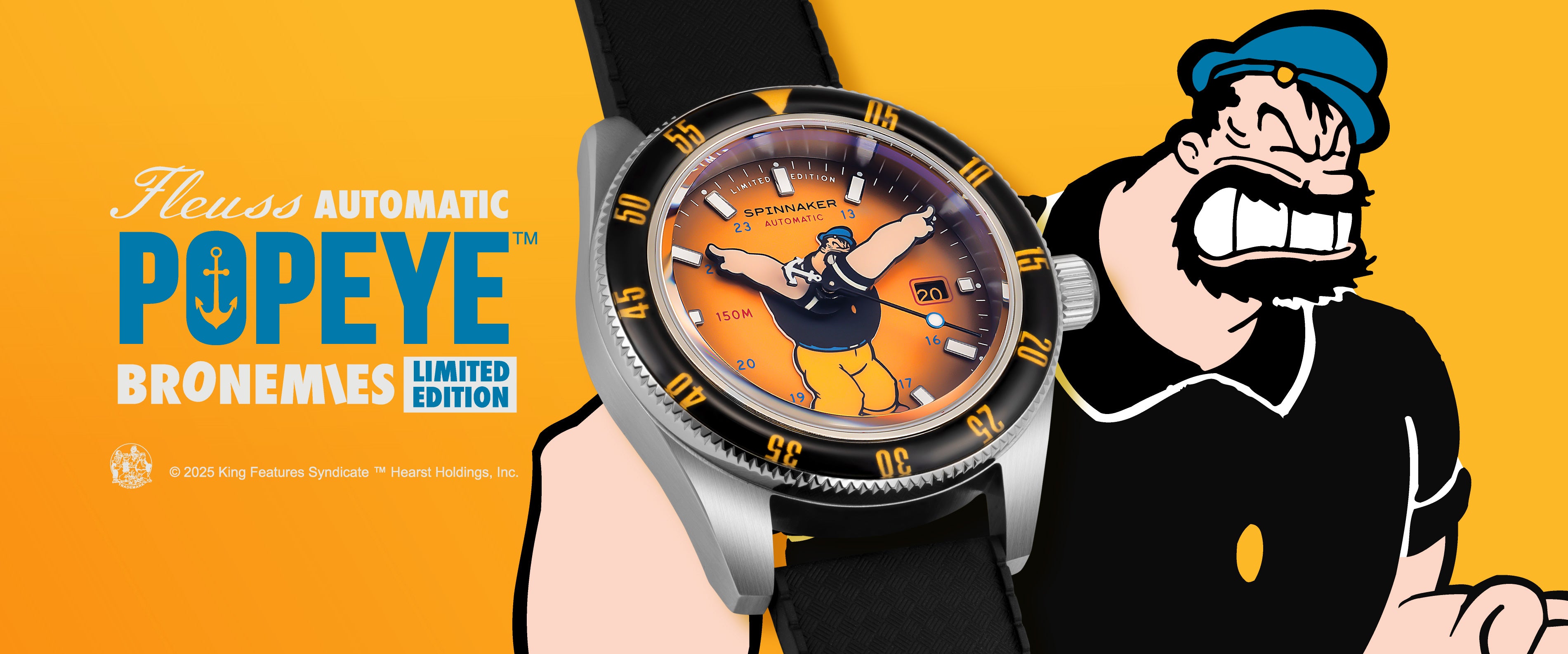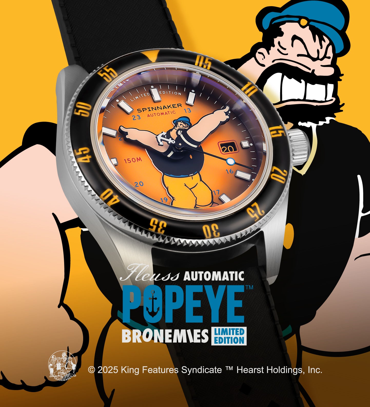 Automatic movement, sapphire lens, Swiss lume, and a battle-ready build. This collection proves Popeyeโs world packs a horological punch.