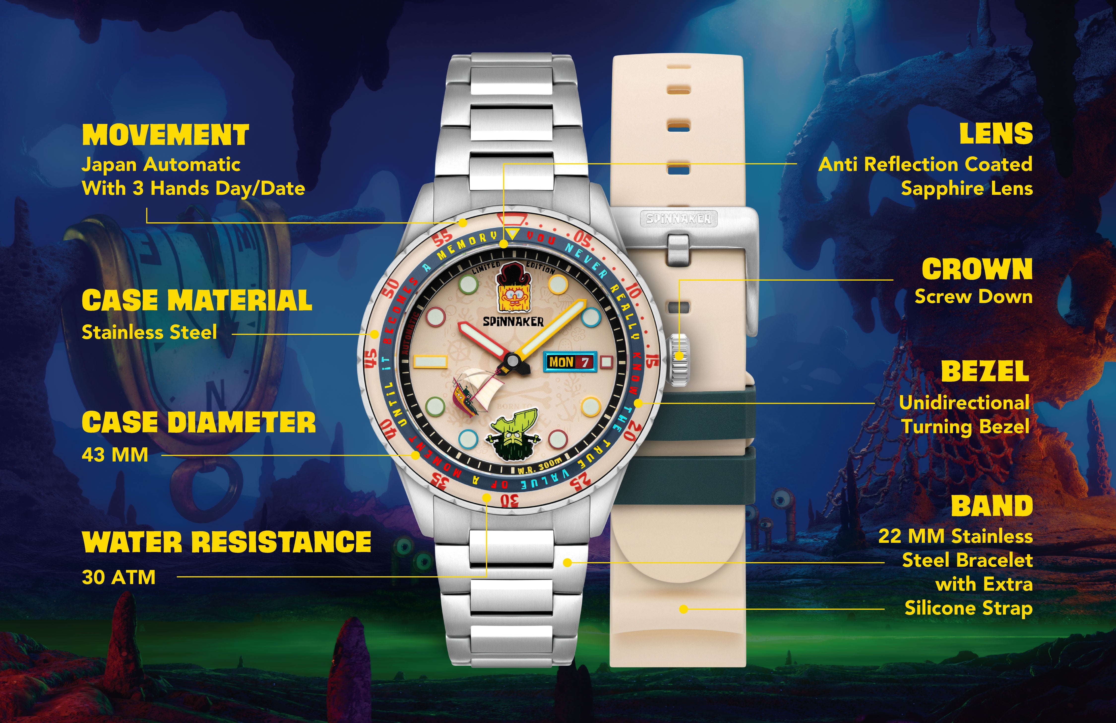 From the depths of the sea comes the Hass Automatic SpongeBob โSearch for SquarePantsโ Limited Edition. Two stunning variants โ Seafaring SpongeBob and Flying Dutchman โ both capturing the spirit of adventure.