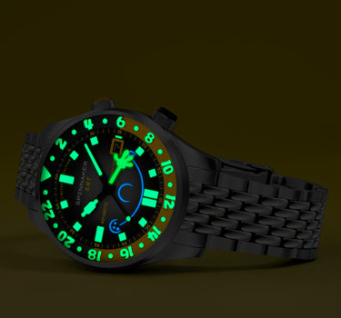 Designed for the avid diver and adventurer, our watches feature radiant luminescence that ensures clear readability in the darkest depths and low-light conditions. Whether exploring underwater realms or navigating night-time escapades, Spinnaker's luminous dials and hands provide the glow you need to stay on course.