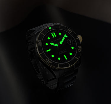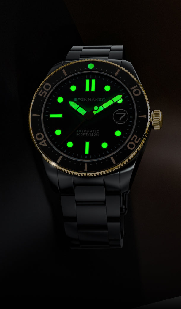 Designed for the avid diver and adventurer, our watches feature radiant luminescence that ensures clear readability in the darkest depths and low-light conditions. Whether exploring underwater realms or navigating night-time escapades, Spinnaker's luminous dials and hands provide the glow you need to stay on course.