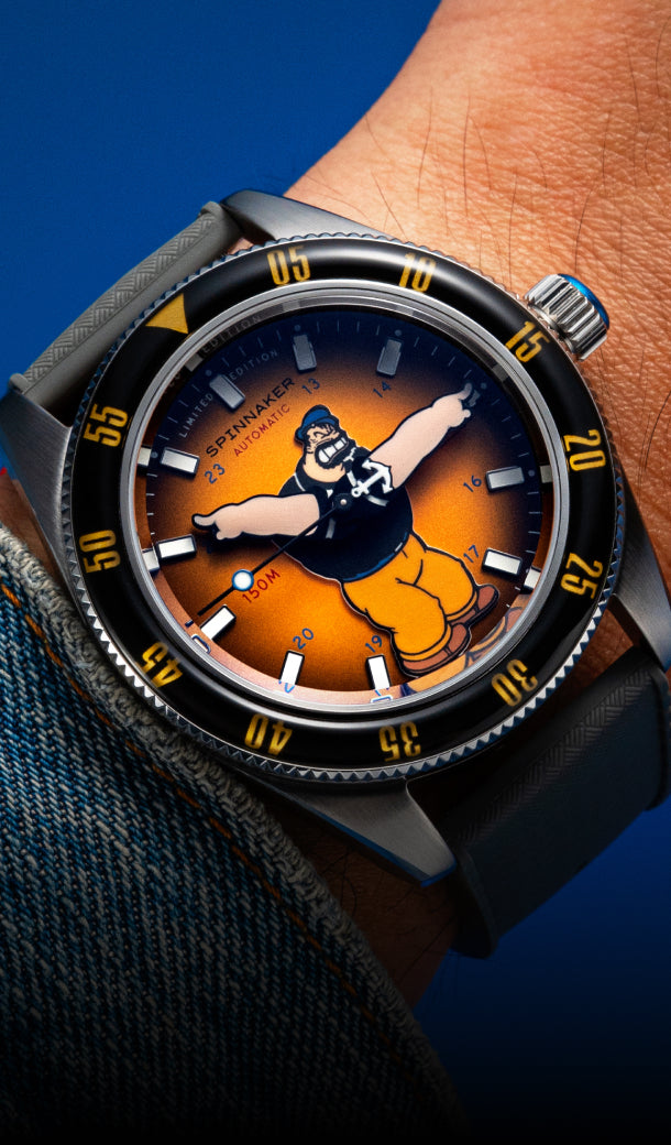 Set sail into a world of timeless rivalry as Spinnaker proudly presents the Popeye Bronemies Limited Edition – a knock-out collab with the iconic sailor man himself. This collection celebrates the legendary tension between Popeye and his brute of a nemesis, Brutus. Two bold timepieces take centre stage in this maritime showdown – each a symbol of strength, grit, and classic cartoon charisma.