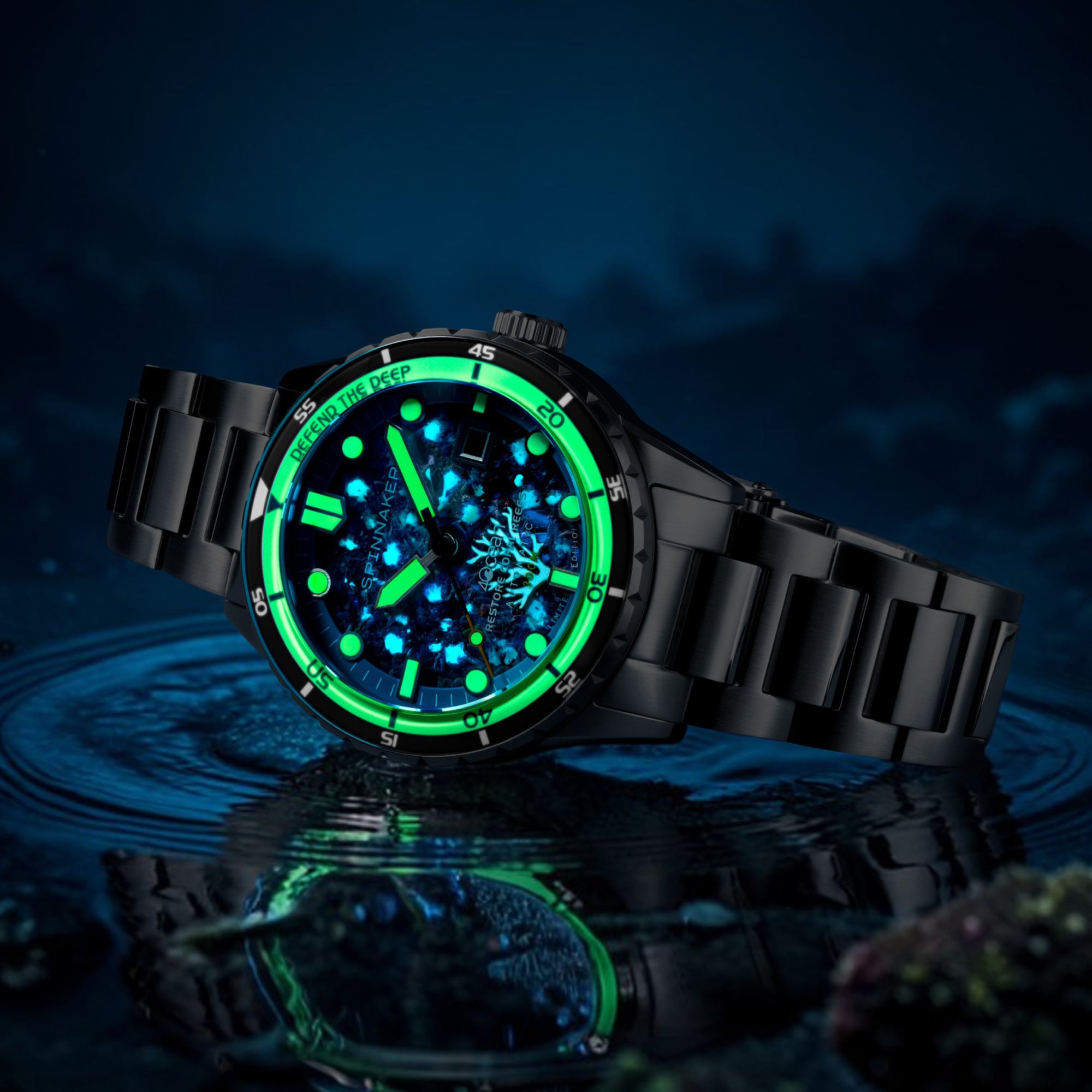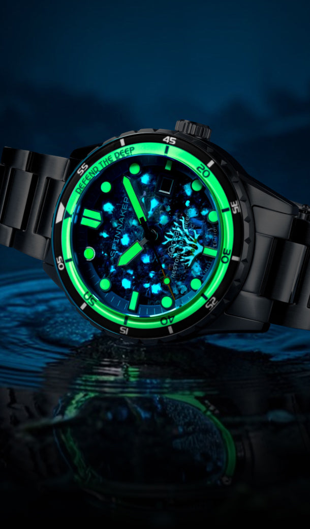 Designed for the avid diver and adventurer, our watches feature radiant luminescence that ensures clear readability in the darkest depths and low-light conditions. Whether exploring underwater realms or navigating night-time escapades, Spinnaker's luminous dials and hands provide the glow you need to stay on course.