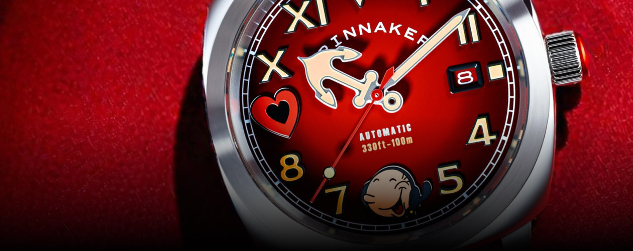 Spinnaker and Popeye partner up once again with a tale of courage, charm, and timeless love on the high seas. Each timepiece captures the magic of love at first sight.