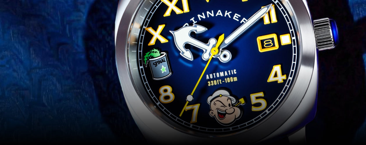Spinnaker and Popeye partner up once again with a tale of courage, charm, and timeless love on the high seas. Each timepiece captures the magic of love at first sight.